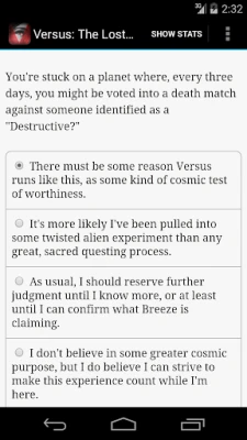 "VERSUS: The Lost Ones" is a thrilling 123,000-word interactive novel, the first in a new series, by Zachary Sergi, author of our best-selling "Heroes Rise" trilogy. Your choices control the story. It's entirely text-based--without graphics or sound effects--and fueled by the vast, unstoppable power of your imagination.