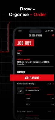 - DRAW: Draw your flashings quickly and easily - ORGANISE: Organise all your flashings neatly in one spot - ORDER: Order your flashings at the touch of a button