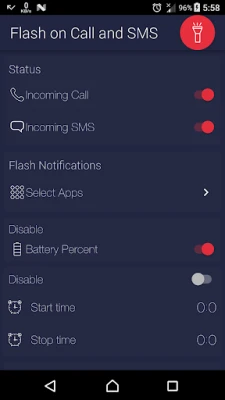 Flash Alert allows you to blink the device's flashlight when you receive phone call or SMS text or app notifications.