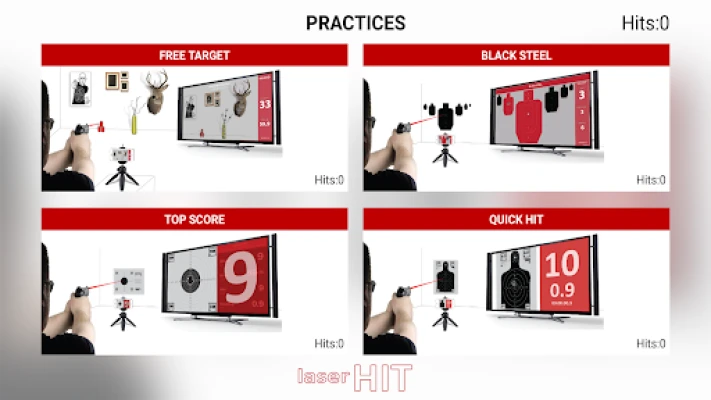- LaserHIT is universal application that compatible with all common laser training cartridges on the market. The complex algorithm will recognize, analyze and accurately read red, green, or blue lasers.