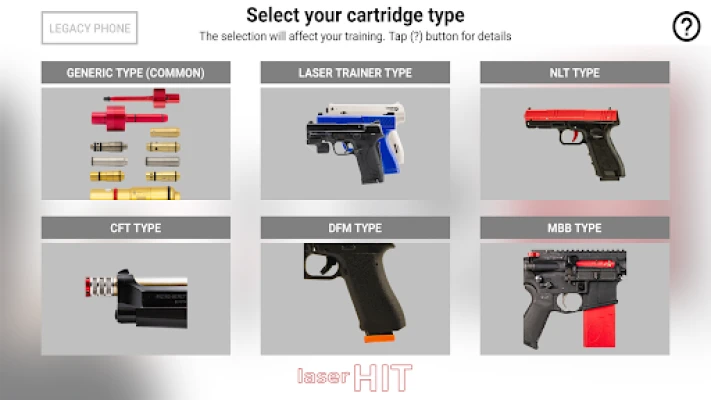 "LaserHIT application will works with two types of LaserHIT training cartridges: High Defenition (HD) and Generic, to cover full range of Android phones on the market.