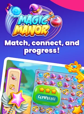 Welcome to the world of Magic Manor. You'll love this charming match-three puzzle game. With beautiful graphics, simple gameplay, and a variety of special chip types, you'll definitely want to keep coming back for more!