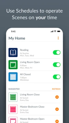 • Easily enable or disable Schedules, so that your blinds take the day off when you do.