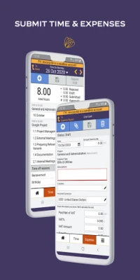 - Weekly and daily views of time - Intuitive time sheets that automatically display projects and tasks the user is assigned to - Full tracking of time card details and user defined fields - Easy access to expense reports - Quick expense receipt attachment from photo library or camera