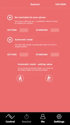 This Desk Control App is an app to be used together with your height adjustable desk. It will help you get the most out of your desk by reminding you to vary your position during the day. It can record the time you standing or sitting every day and calculate the calorie value consumed.Personalize the settings in the Desk Control App and it make you more healthy.