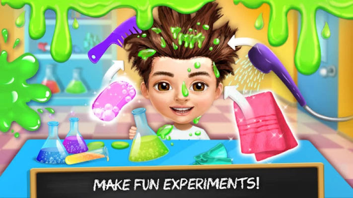 Introduce kids and toddlers to how the school looks like with this cute and fun school cleaning game for girls and boys. Make the observatory perfectly clean and watch the stars. Fix the playground to play sports with kids. Wipe the blackboard in the classroom, clean and decorate the desks. Go to the bathroom and make it look fresh. Watch Justin making slime in the chemistry lab and help him clean afterward. Have the perfect lunch break and don't forget to clean the yellow school bus and decorate it as much as you like! Play, level up and get all of the TutoTOOLS for more cleaning kids games for girls and boys!