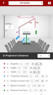 ViewSonic Projector summarizes the projector’s basic and advanced know-how to end users, installers, or distributors. It contains a bunch of practical information for choosing appropriate projectors in different scenarios. No matter small meeting room, middle classroom, or big hall, ViewSonic Projector tells you how far the projector should be placed according to the room ceiling height, projector’s screen size, aspect ratio, etc. Just input several figures, the result will be displayed in the simulation scenarios with measurement. You can use finger to adjust the distance instantly.
